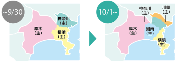 ヤマト運輸/神奈川県で湘南・川崎の2主管支店を新設 物流不動産・施設 2023.06.17 主管支店の組織改正について ヤマトホールディングス傘下のヤマト運輸株式会社(本社:東京都中央区・代表取締役社長:長尾 裕 以下ヤマト運輸)は、10月1日、神奈川県において、これまでの横浜・厚木・神奈川の3主管支店に加え、湘南・川崎の2主管支店を新設しましたので、お知らせします。 記 1.背景 ヤマト運輸は、本年4月より、「働き方改革」を経営の中心に据え、社員の労働環境の改善やラストワンマイルネットワークの強化など、デリバリー事業構造改革に取り組んでいます。 中でも、地域経営の中心である主管支店は、お客さまへのサービス品質の維持・向上や、業務の効率化を図るため、新たな人材の採用や社員の育成といった事業基盤の強化が重要な課題となっています。 このたび、主管支店組織の配置を見直した結果、全国有数の人口増加県である神奈川県において、各エリアの管理体制の適正化が必要であると判断し、従来、3主管支店が統括していたエリアを5つに細分化することを決定いたしました。 2.概要 (1)開設日 2017年10月1日 (2)所在地 湘南主管支店:神奈川県藤沢市藤沢559 角若松ビル6階川崎主管支店:神奈川県川崎市幸区鹿島田1-1-2 新川崎ビルディング26階 ■各主管支店の担当エリア(10月1日~) 横 浜(主) 横浜市(西区・中区・南区・磯子区・金沢区・港南区・栄区)、横須賀市、鎌倉市、逗子市、三浦市、三浦郡 厚 木(主) 相模原市、平塚市、小田原市、秦野市、厚木市、伊勢原市、南足柄市、中郡、足柄上郡、足柄下郡、愛甲郡 神奈川(主) 横浜市(鶴見区・神奈川区・保土ヶ谷区・港北区・緑区・青葉区・都筑区) 湘 南(主) 横浜市(戸塚区・旭区・瀬谷区・泉区)、藤沢市、茅ヶ崎市、高座郡、大和市、海老名市、綾瀬市、座間市 川 崎(主) 川崎市