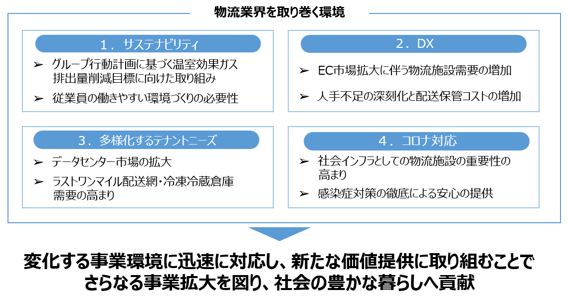 三井不動産/「三井不動産ロジスティクスパーク」、次の10年を見据えサステナビリティと物流DX化を推進し社会課題の解決へ 物流不動産・施設 2023.06.17 「三井不動産ロジスティクスパーク」、次の10年を見据えサステナビリティと物流DX化を推進し、社会課題の解決へ 事業開始から10年、開発・運営施設数53物件、累計投資額約7,000億円に拡大 【本リリースのポイント】■ 2012年の事業開始以降、国内外開発・運営施設物件数は合計53物件、延床面積約420万㎡累計投資額約7,000億円に事業拡大 ■ 次の10年を見据えた施策 ●2030年度に向けた三井不動産グループ脱炭素行動計画に基づき、太陽光発電設備の設置や非化石証書による電力のグリーン化、外部の環境認証取得を積極的に推進 ● 差別化のため、DX活用により入居テナントの配送や庫内の業務効率、従業員満足度を向上 ● 多様化するテナントニーズを受けて、データセンター、アーバン型倉庫、冷凍・冷蔵倉庫を積極的に展開 ● 当社基準の新型コロナウイルス感染対策に加え、IoT技術の活用により更なる感染症対策を実施 ■ロジスティクス事業10年間の事業拡大の実績 開発・運営施設数、総延床面積の推移(各年度末時点) ■ 次の10年を見据えた施策 三井不動産株式会社(本社:東京都中央区、代表取締役社長:菰田正信)は、2012年のロジスティクス事業立ち上げ以来10年を迎えました。 物流業界を取り巻く社会環境は一層変化しており、SDGsや脱炭素社会の実現を目指すサステナビリティに配慮した取組みが強く求められています。また、人口減少やEC市場の急拡大による深刻な労働力不足に対応するために、物流のDX化も重要です。同時に、コロナ禍における感染症対策の強化等、テナントニーズは多様化しています。このような社会環境の変化とテナントニーズに対応するため、次の10年を見据え、「サステナビリティ」「DX」等の各種施策を実施してまいります。 三井不動産は、テナント企業の皆様の課題解決パートナーとして、多種多様なヒト・モノ・コトをつなげ、既存の枠にとらわれない価値づくりに挑戦し、物流ビジネスを推進することで、社会の豊かでサステナブルな暮らしにより一層貢献してまいります。 1.サステナビリティへの取り組み(1)太陽光発電の設置 新規物流施設の屋上には太陽光発電設備を最大限設置し、既存施設についても、積極的に太陽光パネルの設置を進めております。また、蓄電池を利用した自然エネルギーの更なる活用の検討も進めております。 (2) 全施設共用部の100%グリーン電力化※ 全施設の共用部分(※1)の電力を2022年度中に100%グリーン化(※2)する予定です。また、専有部へはテナント様の要望に応じて非化石証書を提供いたします。 ※1当社が所有する持ち分共用部相当電力(一部所有を含み、各施設内自家発電電力相当を除く)※2「グリーン化」とは、太陽光発電自家利用と非化石証書等を利用して使用電力を実質的に再生可能エネルギーとすること (3) DBJ Green Building認証・ZEB認証の取得推進 不動産のサステナビリティをESGに基づく5つの視点「建物の環境性能」「テナント利用者の快適性」「危機に対する対応力」「多様性・周辺環境への配慮」「ステークホルダーとの協議」から評価するDBJ Green Buildingの認証取得を推進いたします。新築物件に関しては、BELS(建築物省エネルギー性能表示制度)に基づく評価にて、ZEB認証も取得する方針です。 【代表物件の事例】・CO2排出量実質ゼロを目指した「MFLP海老名Ⅰ」 新規物件であるMFLP海老名Ⅰ(2022年9月竣工)には、太陽光発電設備を最大限に設置し、DBJ Green Building認証を取得する予定です。また、ZEB認証取得に加え、再生可能エネルギーの100%供給により施設全体のCO2排出量実質ゼロを目指した環境配慮型施設「グリーンエネルギー倉庫」(※3)として開発中です。 参考リリース:https://www.mitsuifudosan.co.jp/corporate/news/2021/0512/ MFLP海老名Ⅰ 外観イメージパース ※3「グリーンエネルギー倉庫(Green Energy Logistics Center)」ZEB認証を取得し、再生可能エネルギーを100%供給可能とすることで、利用実態に合わせた施設全体のCO2排出量実質ゼロを目指した環境配慮型施設(商標取得済み) ・生態系保全の取り組みを実現する「MFLP市川塩浜Ⅱ」 多様性・周辺環境へ配慮した生態系保全の取り組みとして、グリーンインフラを整備しております。「再生緑地」を設置し、雨水を利用したバードバスなど周辺地域に生息する動植物の拠点を目指しています。参考リリース:https://www.mitsuifudosan.co.jp/corporate/news/2022/0331_02/ MFLP市川塩浜Ⅱ 外観 <脱炭素に向けた三井不動産グループ行動計画> グループ全体の温室効果ガス排出量を、2030年度までに40%削減(2019年度比)、2050年度までにネットゼロを新たな目標として、2021年11月に掲げております。 参考リリース:https://www.mitsuifudosan.co.jp/corporate/news/2021/1124/ 2.最新の物流DX技術の提供 最新のDX技術を活用し、入居テナントの配送・庫内の業務効率や従業員満足度の向上を目指し様々なデジタルソリ