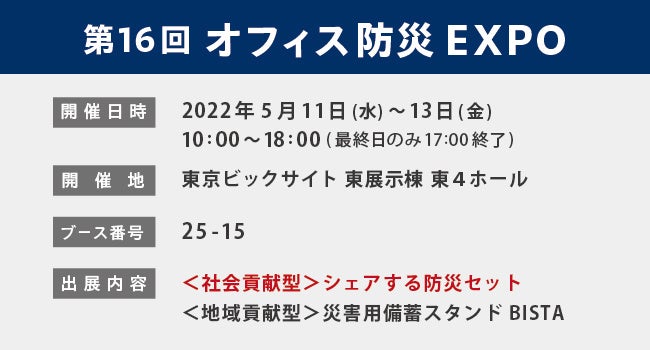 ファシル/大渋滞や豪雪などの自然災害で立ち往生に見舞われた時、周りの人々に必要最低限の防災用品を配布することができる「シェアする防災セット」を提案 物流全般 2023.06.17 SDGs視点の防災セットを新発売!物流業界のトラック輸送に着目した「社会貢献型」の新しい防災のカタチをご提案。 47年に亘り防災用品を企画・製造する専門メーカーのファシル株式会社は、大渋滞や豪雪などの自然災害で立ち往生に見舞われた時、周りの人々に必要最低限の防災用品を配布することができる「シェアする防災セット」を、5/11(水)~13 (金)のオフィス防災EXPO(東京ビッグサイト)で発表します。 「シェアする防災セット」とは? 防災用品30人分が入った「シェアする防災セット」は、トラックなど物流車両の助手席足元や寝台に搭載する防災セットです。大地震以外にも、渋滞・豪雪・冠水など運転中のトラブルは様々。「シェアする防災セット」を備えることで、ドライバーのための備えはもちろんのこと、周囲の困っている方々へ防災用品を分け合うことが出来ます。日本全国を走り続けているトラックだからこそ、いつどこで何が起こるか分からない今の時代に、だれかの役に立てるかもしれない。物流業界としてできる社会貢献のひとつのカタチです。 セット内容 30人分の必要最低限な防災用品を揃えました。品質にもこだわり、大手自動車メーカー6社の純正車載用防災セットを手掛けるファシルが安全・安心な防災用品を厳選しています。限られたスペースへの設置を考慮したサイズ感と丈夫な段ボールを採用。 防災用品搭載車ステッカー 防災用品を搭載していることを周知できる「防災用品搭載車ステッカー」 が付属しています。「誰か」のためを想う気持ちを込めて、やさしさと親しみを感じられるデザインを施しました。 導入イメージと期待される効果 ——- <さらに詳しい情報はこちら> ——-https://facil.jp/wp-content/uploads/download/shareset.pdf(チラシデータ) 2022年オフィス防災EXPOで発表 2022年5月11日(水)~13日(金)に開催される第16回オフィス防災EXPOで、「シェアする防災セット」を発表、展示いたします。ぜひお立ち寄りください。 商品スペック 名称 : シェアする防災セット ベーシック/ライト定価 : ベーシック/56,800円 (税別) ライト/36,800円 (税別)サイズ : ベーシック/約W390×D310×H220mm ライト/約W390×D310×H190mm重量 : ベーシック/約7.2kg ライト/約5.8kg内容 :【ベーシック】①使い捨て携帯トイレ(大小兼用) ②使い捨て携帯トイレ(小専用) ③静音アルミポンチョ ④N95マスク ⑤長期保存用カイロ ⑥備蓄用氷砂糖 ⑦災害時お役立ちカード付属品:持ち運び用コットンバッグ2枚・防災用品搭載車ステッカー【ライト】①使い捨て携帯トイレ(大小兼用) ②使い捨て携帯トイレ(ポンチョ付き/小専用) ③N95マスク ④長期保存用カイロ ⑤備蓄用氷砂糖 ⑥災害時お役立ちカード付属品:持ち運び用コットンバッグ2枚・防災用品搭載車ステッカー数量 :各30人分発売日 :2022年5月11日(水)