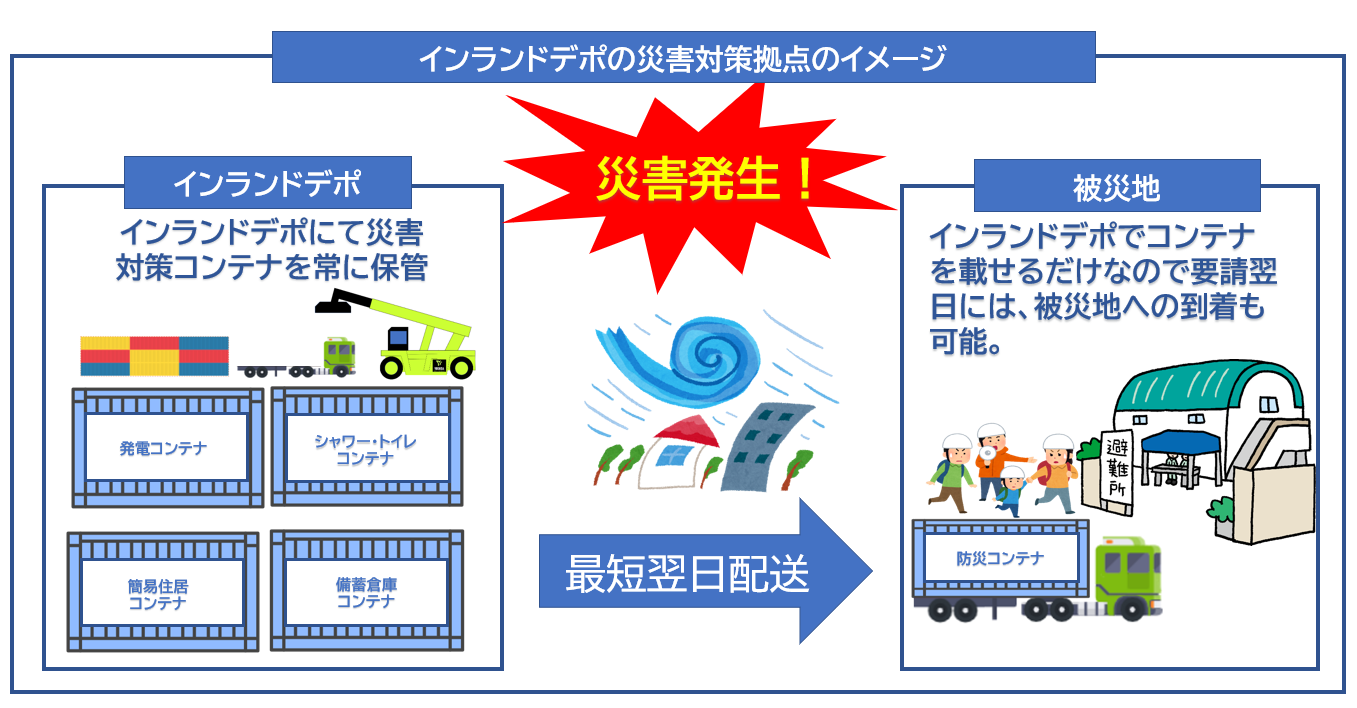 吉田運送/クラウド活用による機能性コンテナ運用でインランドデポの災害対策拠点化を推進 物流全般 2023.06.17 高度コンテナ活用の吉田運送、クラウド活用による機能性コンテナ運用で、インランドデポの災害対策拠点化を推進 【インランドデポとアンドコンテナのシナジーによる災害時対策拠点化】 このほどクラウド実践モデル2021に選出された、コンテナイゼーションベース運営(高度コンテナ活用)の吉田運送株式会社(茨城県坂東市 代表取締役 吉田孝美:以下 吉田運送)は、コンテナラウンドユースの拠点であり、内陸の港とも呼ばれるインランドデポ事業と、コンテナ販売・利活用サービス「アンドコンテナ」のシナジー事業として、災害時に機能性コンテナを適地に提供可能とする災害時対策拠点化施策を進めてまいります。 弊社が茨城県坂東市と栃木県佐野市、広大な関東平野の陸送の要所である二か所で運営するインランドデポは、2019年のラグビーワールドカップや、昨年開催された東京オリンピック・パラリンピックの特設会場に電気を届けるための発電コンテナの基地としても活用されてまいりました。インランドデポは海上コンテナ輸送の効率を飛躍的に上げるのみならず、発電コンテナをはじめ、シャワー・トイレコンテナなどの機能性コンテナをシームレスに提供する基地となり得ます。 それに加え、弊社はコンテナ販売・利活用サービス、アンドコンテナ事業を展開しており、ガレージや書斎、グランピング施設などコンテナを建材として活用するノウハウを有しております。 ▼YouTubeでアンドコンテナCH配信中!▼https://www.youtube.com/channel/UC1scuyPMwbGI_FGn2HSm51A クラウド実践モデル2021に選出された弊社はこの二つの事業をクラウドも活用して連携させ、近年多発する異常気象や、予期せぬ大災害に、災害時用に必要とされる各種コンテナをインランドデポにプールし即時に対応できる施策を推進し、災害対策拠点化を進めてまいります。 ◇災害対応機能性コンテナ例 ① 発電コンテナ災害発生時のライフラインの中で、もっとも止まりやすいのは電気です。発電機能をもつコンテナをインランドデポにプールし、災害発生地点にデリバリーすることで停電に対処できます。 ② 簡易住居コンテナコンテナを利用した簡易住居は、持ち運びが容易であるため、安全が確認された場所に輸送・設置可能です。 ③ シャワー・トイレコンテナコンテナのみで完結できるモジュール型のシャワー・トイレは災害時に停電や断水が起こった地域に運びライフラインの確保ができます。 ④ 備蓄倉庫コンテナ救急用の水・浄水器や保存食、衣料品、簡易電源装置など災害時に役立つ品々を備蓄し、インランドデポで保管。有事の際にスムースに活用できます。 【各者様にご賛同のコメントを頂いております。】 ■坂東市長 木村敏文氏この度、吉田運送株式会社様と「災害時におけるコンテナ型トイレ等の提供に関する協定」を締結させて頂き、誠にありがとうございます。近年、大規模災害時における避難所生活は長期化することが予想され、その際、断水により、トイレを使用することができないことが問題となっています。今回の協定締結によりまして、国の基準を満たす快適なトイレを災害時に確実に提供頂けるということは大変心強いです。同時に、衛生面の維持にも期待でき、昨今の感染症対策にも効果的であると考えております。今後も吉田運送株式会社様と、より一層の連携を深め、避難所の備えに努めてまいりたいと存じます。 ■佐野市産業文化スポーツ部 部長 小倉浩史氏 佐野市は、吉田運送による「クラウド活用による機能性コンテナ運用で、インランドデポの災害対策拠点化を推進」の発表を歓迎します。吉田運送がこれまで培ってきたコンテナインランドデポのノウハウとコンテナによる災害対策拠点を組み合わせることによって、有事の際に迅速に対応ができるので、災害大国の日本で今後、社会貢献できることを応援しています。 ■アグレコジャパン 会長 松本健一氏 Aggrekoは、2019年のラグビーワールドカップや2021年の東京オリンピック・パラリンピックの折、発電機コンテナ数百台規模の大規模集積基地として吉田運送株式会社のインランドデポを活用させて頂きました。また、弊社はこの度の吉田運送さんによる「クラウド活用による機能性コンテナ運用で、インランドデポの災害対策拠点化を推進」を有益なSDGsの取り組みとして歓迎致します。同社がこれまで培ってきたインランドコンテナデポ運営ノウハウと、ITを活用した災害対策拠点ハブ運営の組み合わせにより、有事の際に迅速に対応ができ、災害大国日本での事業継続支援の取り組みとして今後この分野でも社会貢献をされることを応援しています。 LINE公式アカウントQRコード または 「アンドコンテナ」で友達検索 インスタグラム公式アアカウントQRコード または「アンドコンテナ」でハッシュタグ検索