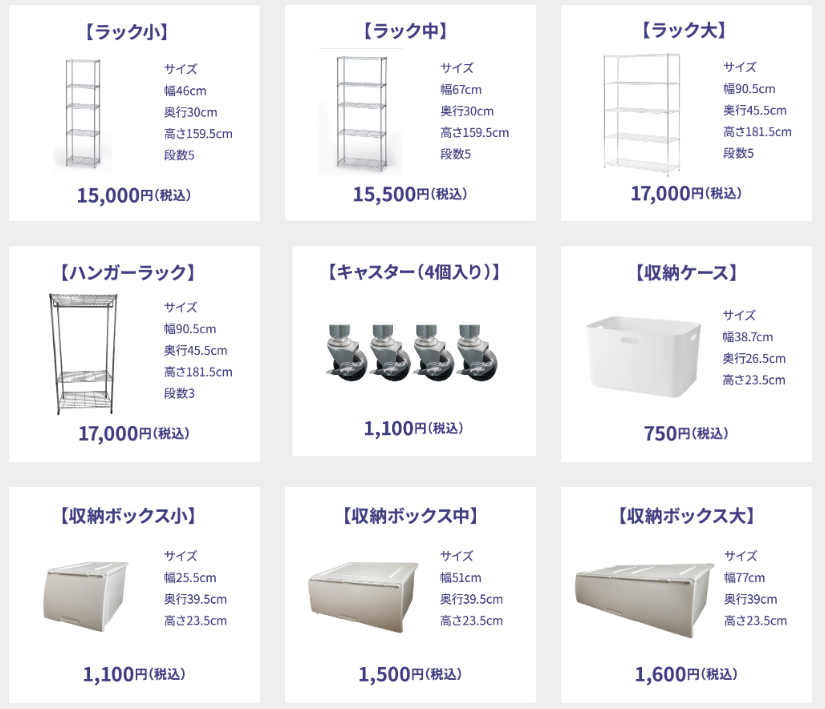エリアリンク/ハローストレージ「ラック販売・組み立てサービス」の商品ラインナップが増加 物流関連商品 2023.06.17 ハローストレージ「ラック販売・組み立てサービス」の商品ラインナップ増加!対応エリア拡大! トランクルーム使い始めの面倒ごとをまとめて解決!ラックだけでなく収納BOXも購入可能に。 全国でトランクルームを展開しているエリアリンク株式会社(東証スタンダード市場:8914)が、2021年9月に開始したラック販売・組み立てサービス。これは、トランクルームのご契約と同時にラックをご購入いただいたお客様に対し、ご利用開始までに、ラックの組み立て・搬入までお客様に代わってハローストレージが済ませておくサービスです。この度、ご好評につき6月2日から商品ラインナップを増やし、サービス可能エリアも拡大いたしました。URL:https://www.hello-storage.com/trunkwithrack/ サービス拡大の背景高さのあるトランクルームを有効活用するためにはラックがあると非常に便利である一方、お客様からは『採寸や搬入が面倒』『トランクルーム内で組み立てを行うのが想像以上に大変』というような声がありました。そのようなご意見を解決すべく始めたラック販売・組み立てサービスは、多くの方にお申込みをいただいております。サービス開始時はラック2種類のみの展開でしたが、反響をうけて4種類に追加、そして、ラックのサイズにあった収納ボックスも販売を開始しました。さらに、より多くのお客様に本サービスをご利用いただけるよう、この度サービスエリアの拡大を決定しました。 商品ラインナップ 今までは大・小のラック2種類のみを販売・組み立てしておりましたが、お部屋のサイズやお客様の用途に合わせて組み合わせてお使いいただけるように、大・中・小の3サイズ展開に変更。また、衣類を収納されるお客様も多いことから、新たにハンガーラックも商品ラインナップに追加いたしました。加えて、ラックにぴたりとハマる収納ボックスも3サイズお選びいただけるようになりました。お使いになるトランクルームのサイズや収納されるものに合わせてお選びいただけます。 各部屋の寸法は公式ホームページに記載しておりますので、ラック購入の際にはホームページの情報を参考にしてください。 HP:https://www.hello-storage.com/ 対象エリア 今までの東京・千葉・埼玉・神奈川に加え、6月2日から大阪・愛知も対象エリアに追加。 『ラック販売・組み立てサービス』申込方法ハローストレージのご契約と同時にお申込みください。ネットからお申込みの場合、契約内容の確認画面にある各種オプションより『ラック販売・組み立てサービスのお申込み』を選択してください。お電話の場合は、オペレーターに『ラック販売・組み立てサービスの申込希望』とお伝えください。 ※『ラック販売・組み立てサービス』を希望の場合、最短の利用開始日はお申込みから4日後です。 ※ご解約の際には、お客様自身でラックの解体、撤去をお願いいたします。※ラック販売希望は、ハローストレージのご契約お申し込み時のみ承ります。 今回ご紹介した『ラック販売・組み立てサービス』はハローストレージのサイトでも詳しくご確認いただけます。URL:https://www.hello-storage.com/trunkwithrack/ 今後も皆さまの暮らしがより便利により楽しくなるような事業・取り組みをおこなっていきます。 ■運営会社について社名 : エリアリンク株式会社代表者 : 代表取締役社長 林尚道本社 : 東京都千代田区外神田4-14-1 秋葉原UDXビル北ウィング20階設立 : 1995年4月資本金 : 6,111,539千円証券コード : 8914(東京証券取引所スタンダード市場)URL : https://www.arealink.co.jp/