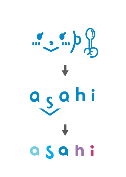 新シンボルマークでは、食べる人の顔をひとりひとり思い浮かべ、「丁寧に心を込めて食品を運ぶ」というイメージを「asahi」の文字に落とし込みました。