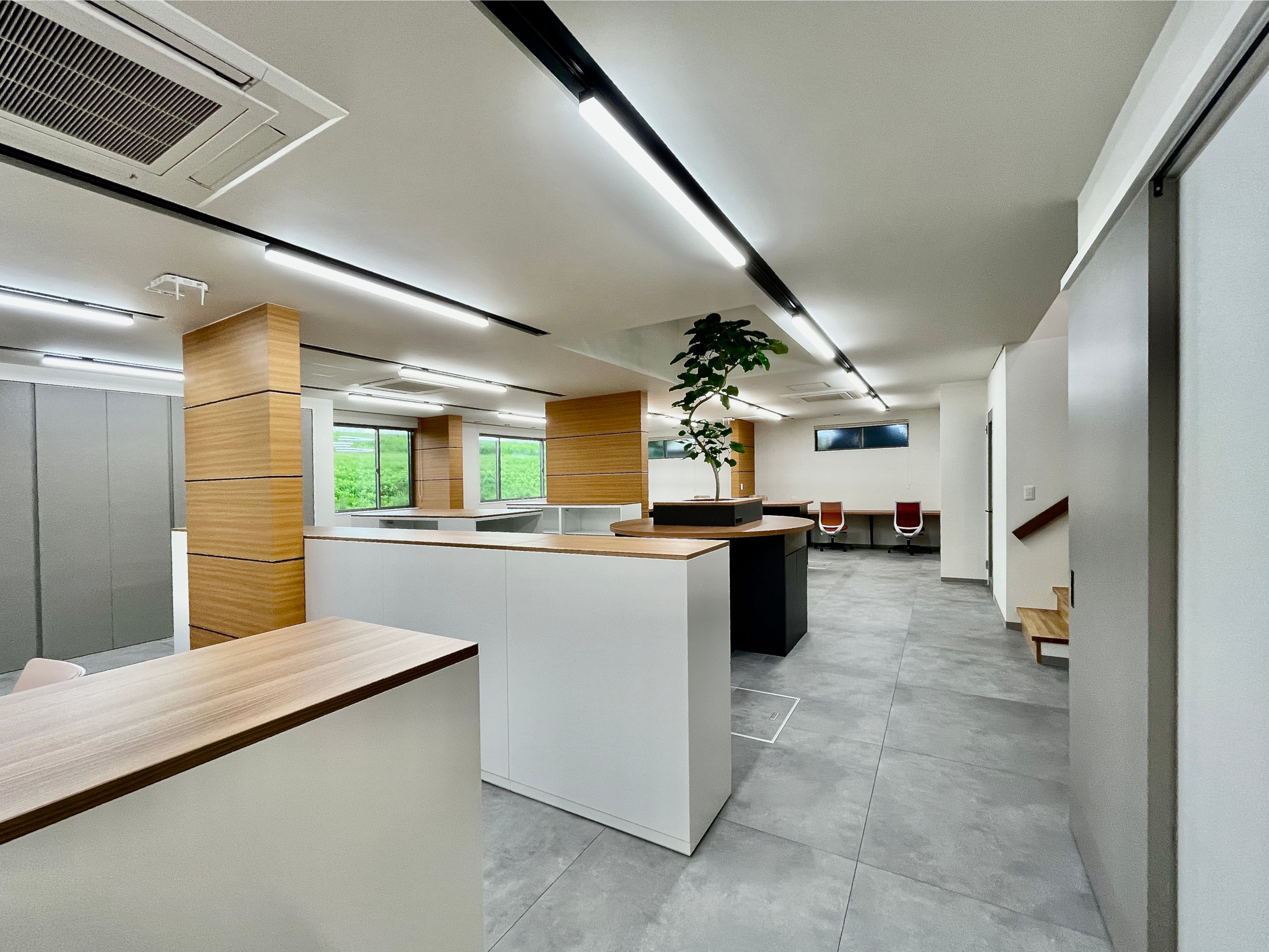 旧事務所の老朽化に加え、コロナ禍でイベント事業が減り、その反面リモートで商談を行う業務が増加したため、Web会議にも対応したオフィス棟を新設しました。